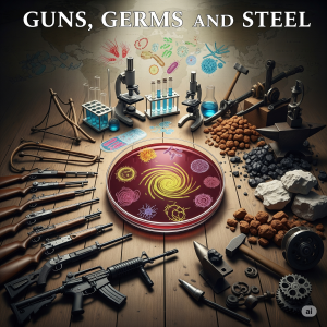 유라시아 문명이 다른 문명을 정복할 수 있었던 이유는 유라시아 인종의 지적, 도덕적, 유전적 우월성 때문이 아니라, 지리적 차이에 있다고 다이아몬드는 주장합니다.